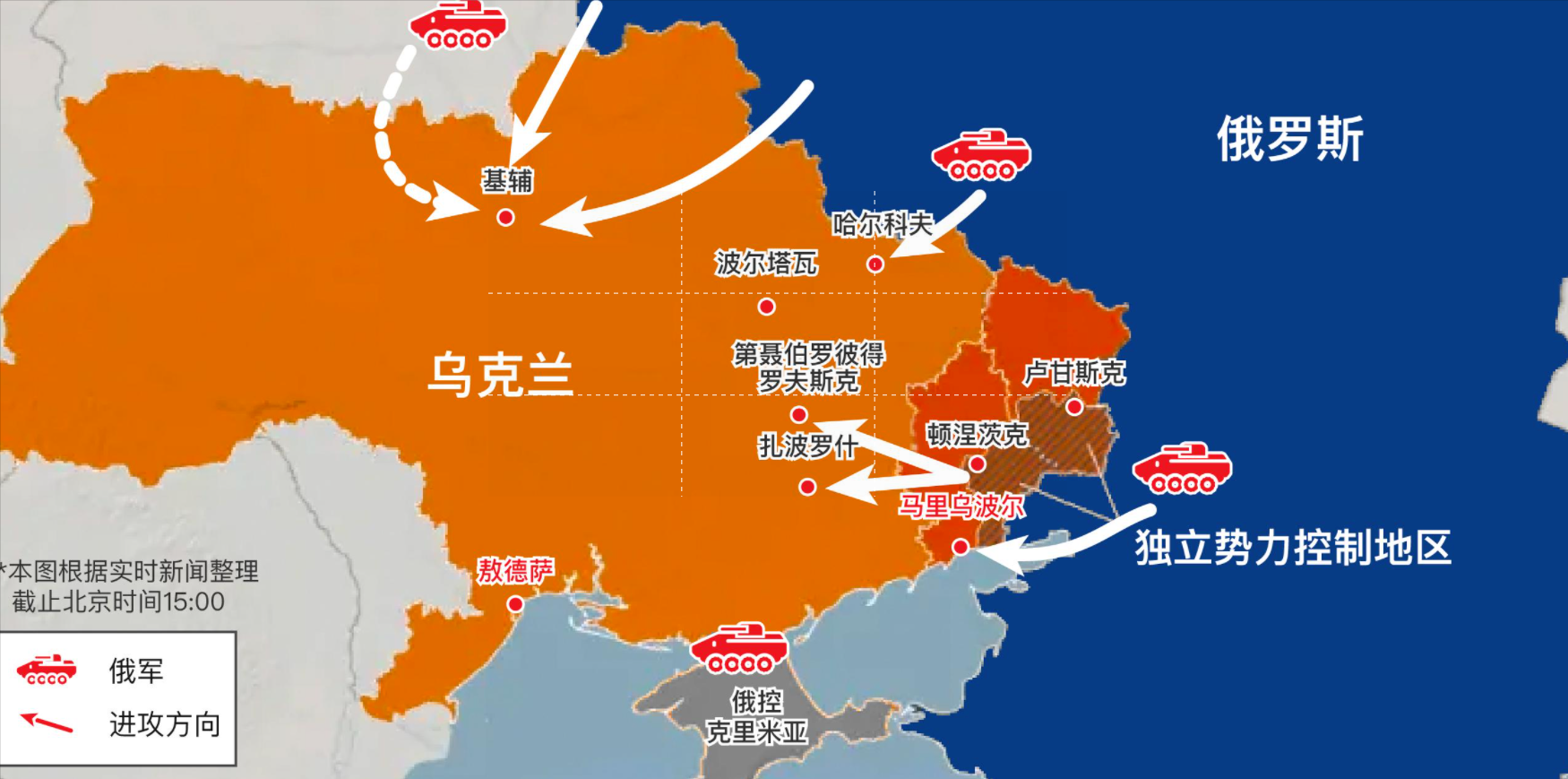冲突历程2022 年 2 月 24 日,俄乌冲突爆发,俄罗斯发动大规模军事行动。初期,俄军采取闪电战,之后转为重点攻略乌东地区。在这场持久战中,乌克兰军事设施遭受严重损毁,大量军事人才伤亡。随着冲突进入 2023 年,乌军在美西方军援下展开反攻,俄军坚守防线。到了 2024 年,俄军重占优势,双方在库尔斯克等地反复争夺。