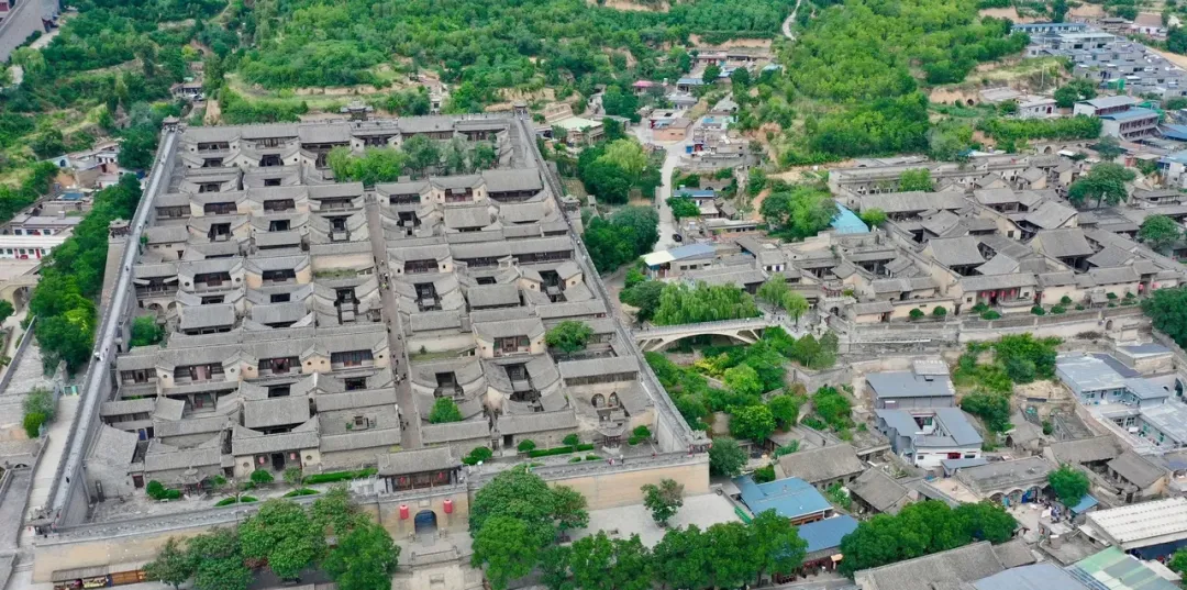 站在城墙上,可以看到龙头龙尾,我们刚才走的巷道就是龙身。航拍的话可以看到王家大院的布局是一个王字,密密麻麻的房屋,层层叠叠,非常装观。