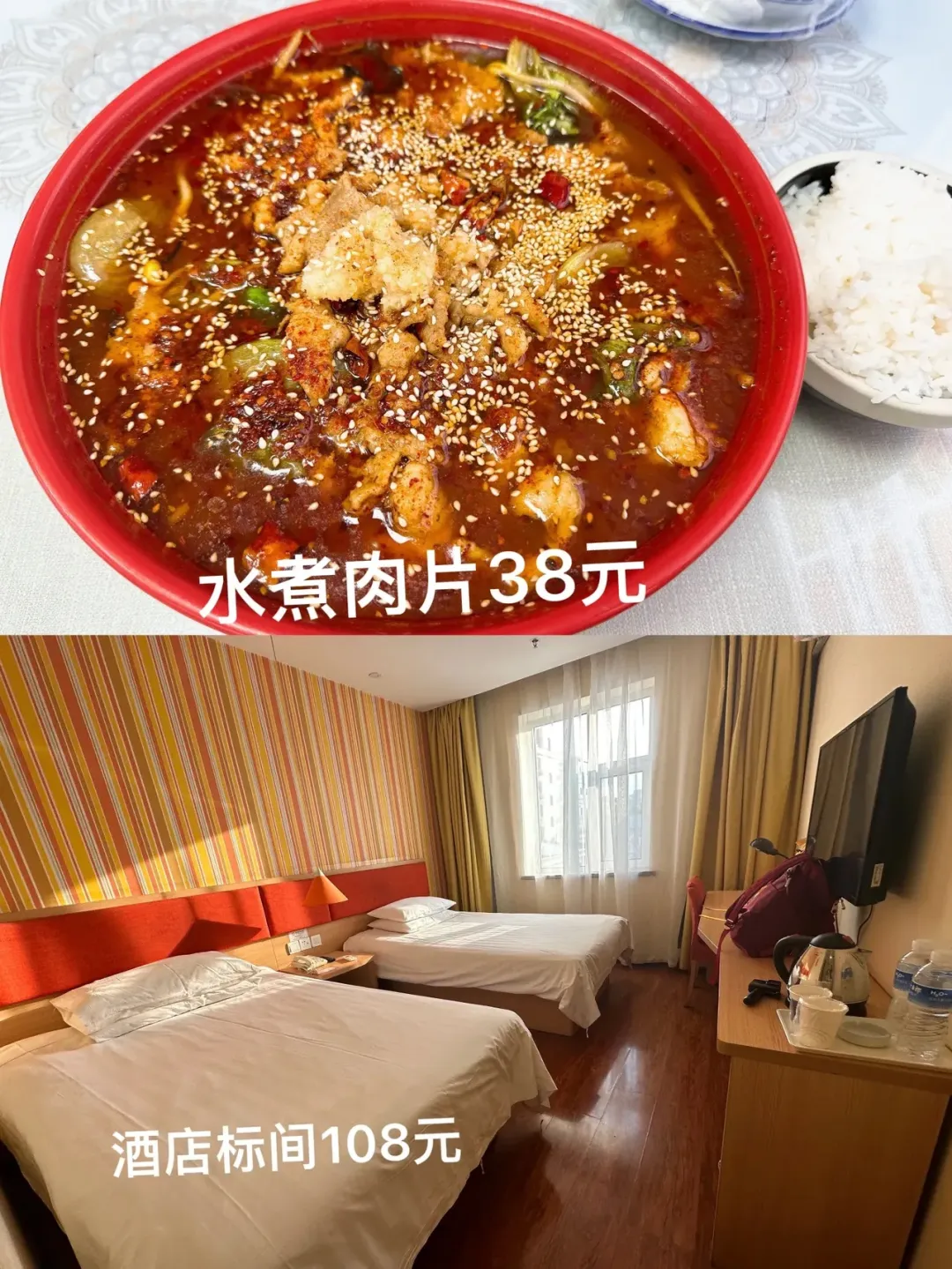 晚餐在一家山西菜馆吃的水煮肉片,38元,米饭2元,一共40元。特地和老板说了多麻辣,不过口味和我们四川的不一样,改良后的。
