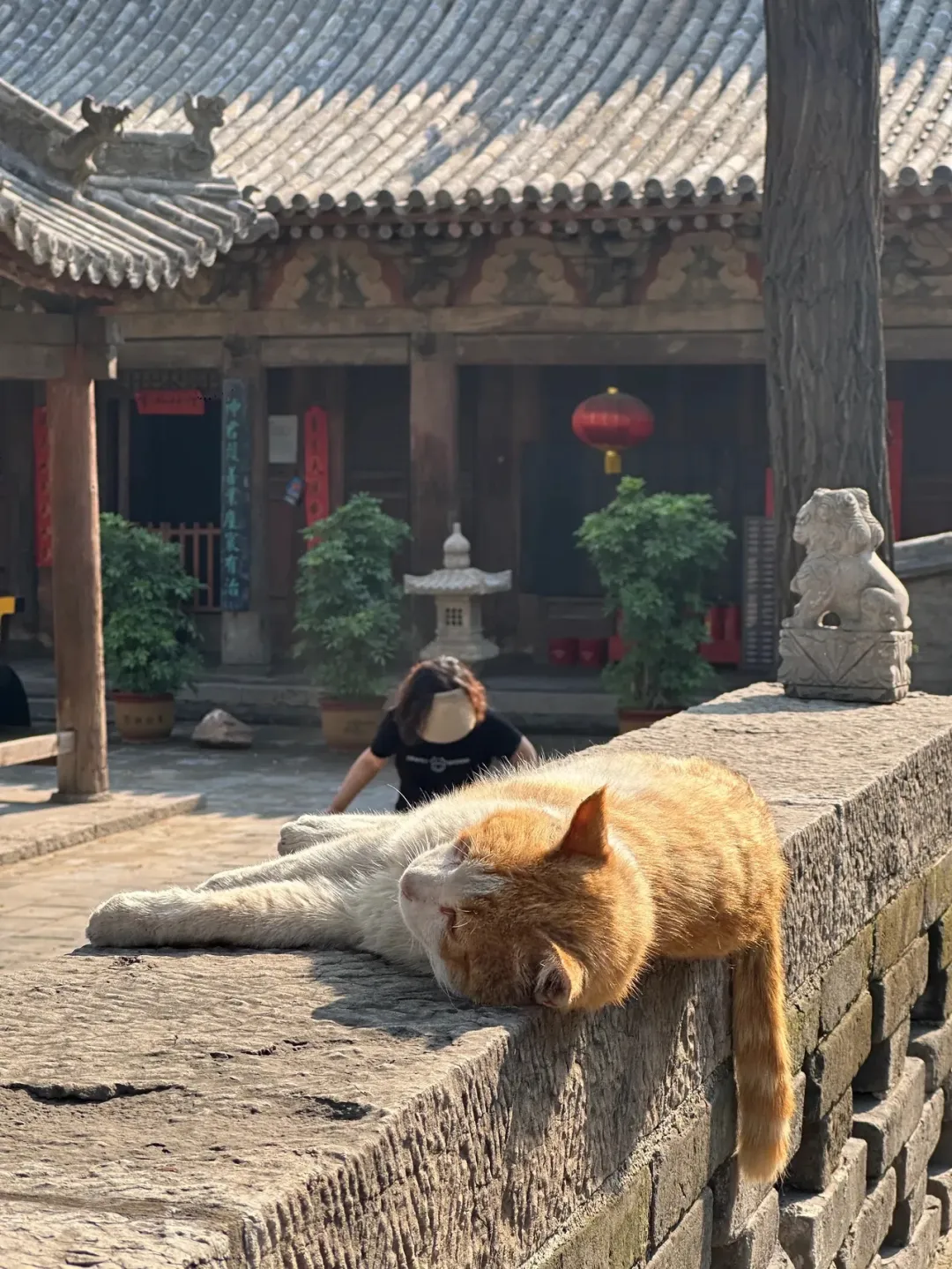 我还挺喜欢资寿寺的,这里很清静,和王家大院的游人如织相比,这里算得上是一片净土。寺院里有只流浪猫大橘,一见我就黏着不走,跟我很有缘。一位年轻的和尚还让我把它带走。