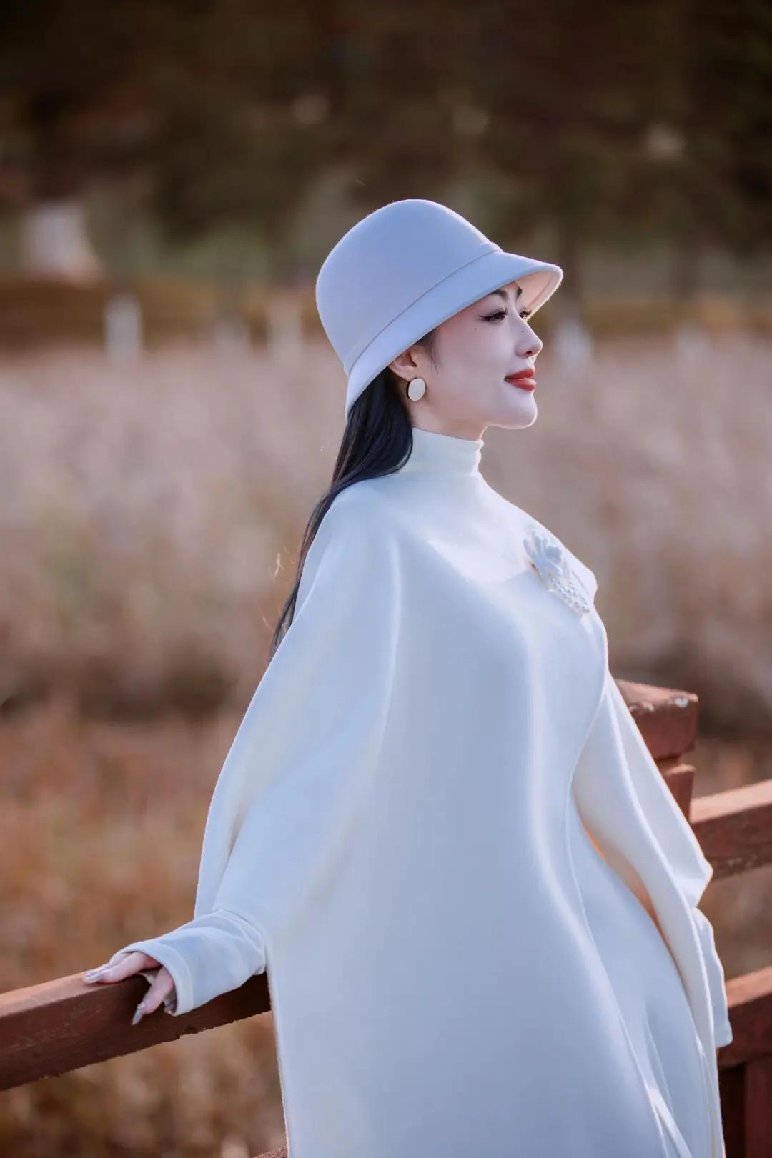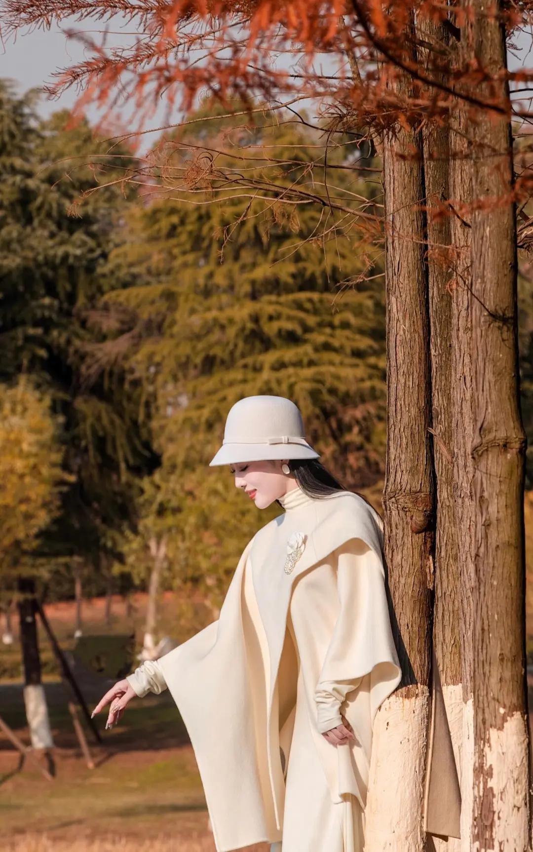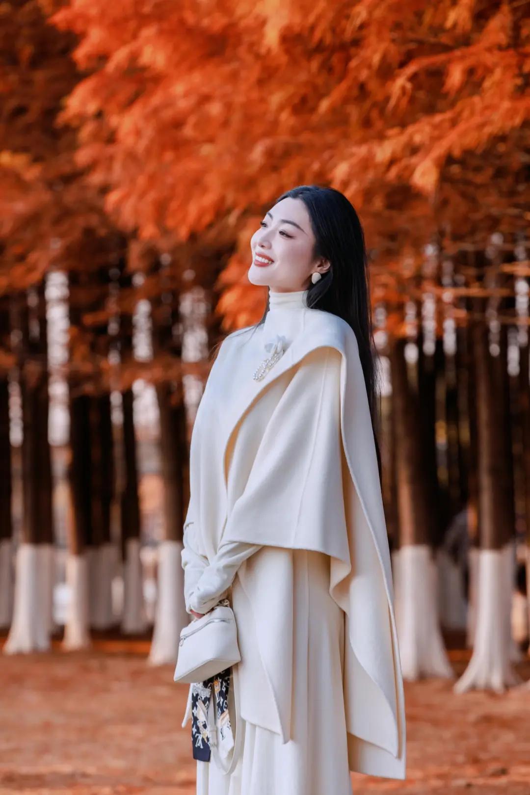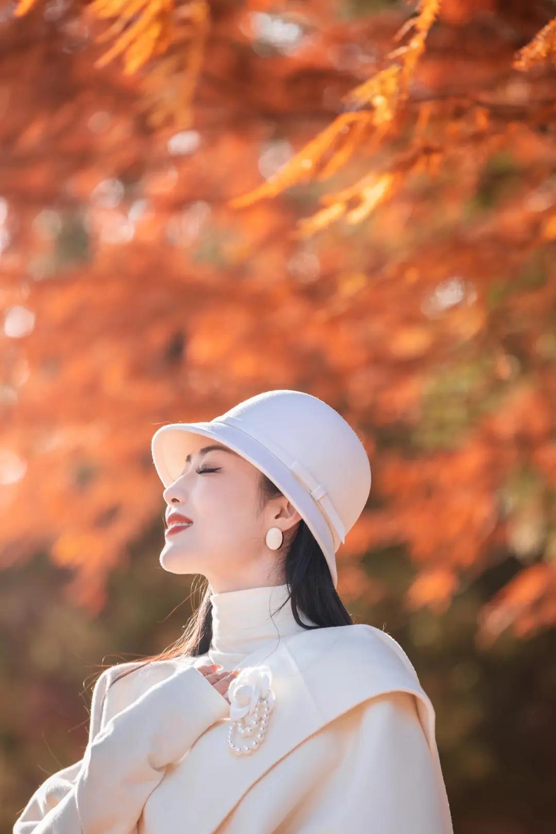 站在秋冬的树林轻轻转一下身体,让包自然垂着或者轻轻提在手里,摄影的人抓一下你转身那一刻的笑,中年女士拍照用这个动作会显得很灵动,轻轻一转的瞬间衣摆会动,头发也会动,笑容自然又不生硬,照片就会有自然的轻盈感。