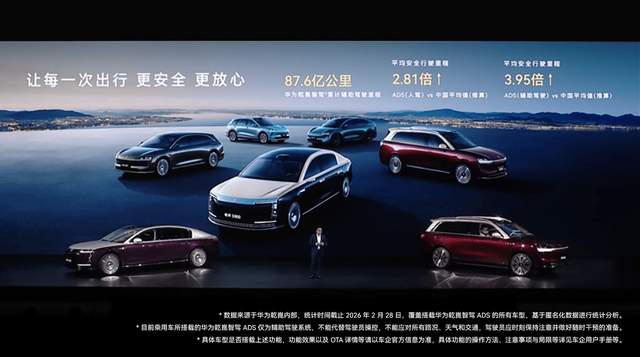 华为乾崑的技术突破并非一蹴而就,而是长期技术积淀的结果。截至2026年3月3日,华为乾崑智驾主动安全系统已为鸿蒙智行车主累计避免可能碰撞超354万次,累计辅助驾驶里程突破87.6亿公里,其ADS人驾和辅助驾驶的平均安全行驶里程,分别达到中国平均值的2.81倍和3.95倍。这背后是华为乾崑坚持的传感器融合感知路线,将激光雷达、毫米波雷达、摄像头的优势叠加,结合WEWA架构的强大计算能力,实现了逆光、雨雾、暗光等复杂环境的全场景感知覆盖。
