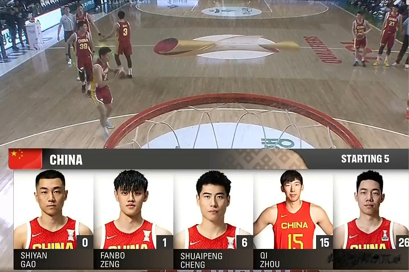 世预赛中国男篮和韩国队的二番战,状态低迷的胡明轩被程帅澎顶替,其他四人不变,高诗岩依旧先发。