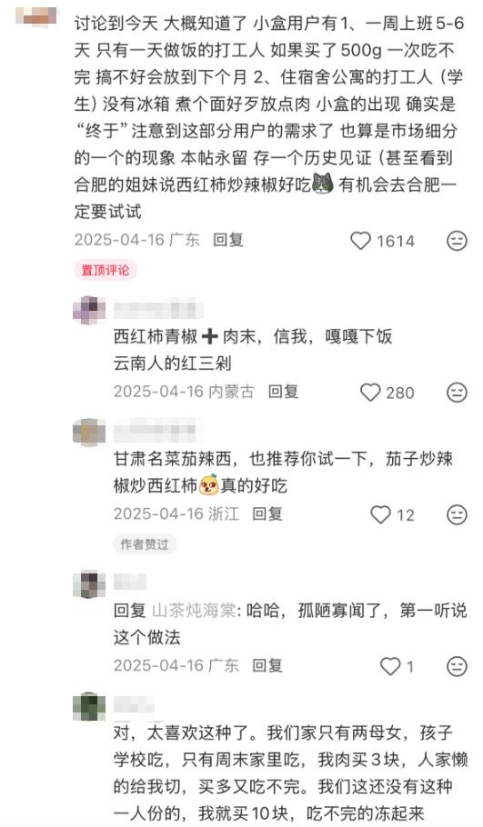 有网友总结,小份生鲜的出现