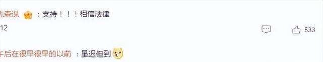 网友们对此反应热烈,评论区瞬间成了热锅上的蚂蚁,大家纷纷发表自己的看法。有的网友直言:“支持!相信法律!”这句口号如同一面旗帜,在网络上激起了阵阵共鸣。而另一位网友则表示:“虽迟但到。”这句话宛如一个耐人寻味的哲学命题,似乎在暗示我们:真相总会水落石出,关键在于我们是否有耐心等待。