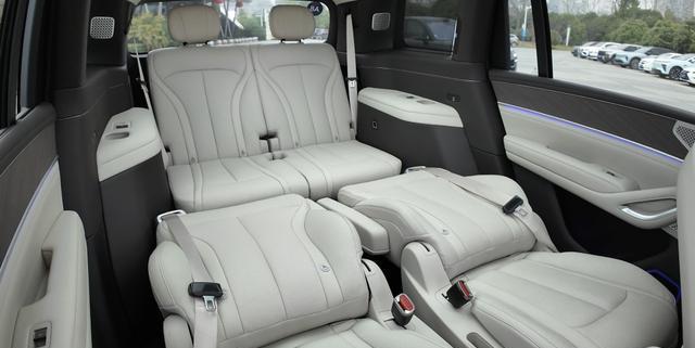 咱们再聊聊它的车内空间。腾势N9采用6座布局,这可是非常贴心的设计。车内除了常规的前后排座椅通风加热按摩功能外,还提供了一些很实用的小配置,像后排小桌板、车载冷暖箱、后排娱乐屏等。这些配置就像是给乘客配备了一个移动的小家。更厉害的是,它还提供一二排或二三排的大床模式。为了配合这个大床模式,第三排座椅除了能前后位置调节和靠背角度调节外,还支持坐垫俯仰调节。这就使得车内空间具有极强的灵活性。我对比了一些同级别的SUV,发现很多车在车内空间的利用上都没有腾势N9这么巧妙。比如说有的车虽然座位也很多,但是一旦调整座椅布局,就会显得很局促,而腾势N9却能很好地解决这个问题。