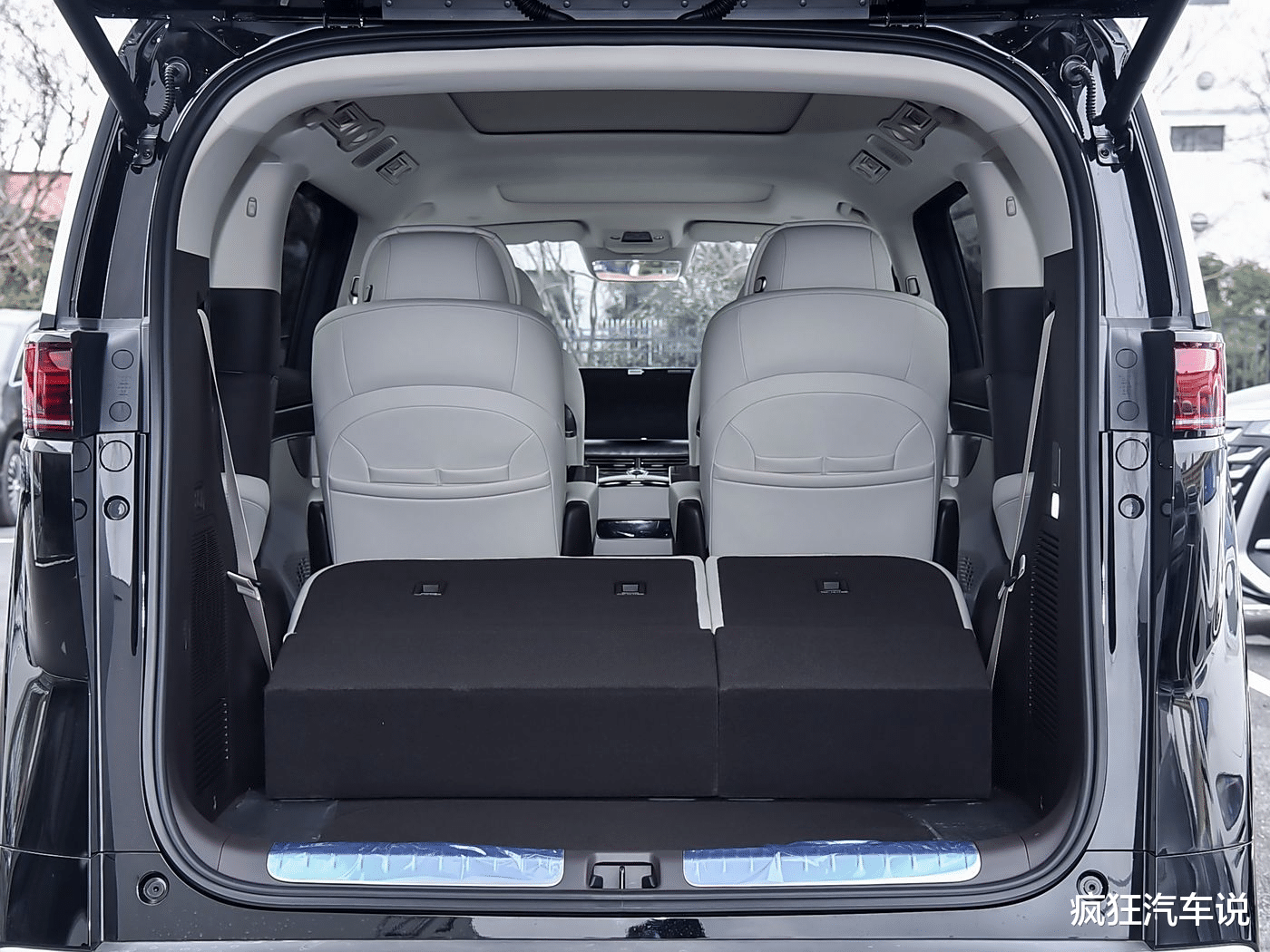 首先,腾势D9在外观造型上可以说看点十足,所呈现出的气场丝毫不输埃尔法,前脸采用了超大尺寸的进气格栅,搭配鹰眼式的LED大灯组,以及上下方C字型的镀铬饰条,活脱脱一个“公路巨兽”。车身侧面,腾势D9的设计可以说逼格满满,B、C柱进行了熏黑处理,营造出了悬浮车顶的效果,D柱位置加入了镀铬饰条,跟镀铬的车窗相融合,搭配上下方侧裙位置的镀铬饰条,呈现出了比较精致时尚的一面。另外,像熏黑后视镜、电动侧滑门、多辐式轮毂都没有缺席。车尾的造型略显方正,贯穿式的尾灯和横贯式的高位刹车灯,点亮后非常醒目,而尾灯下方的“DENZA”标识以及双边共双出的排气装饰,也呈现出比较高的辨识度。