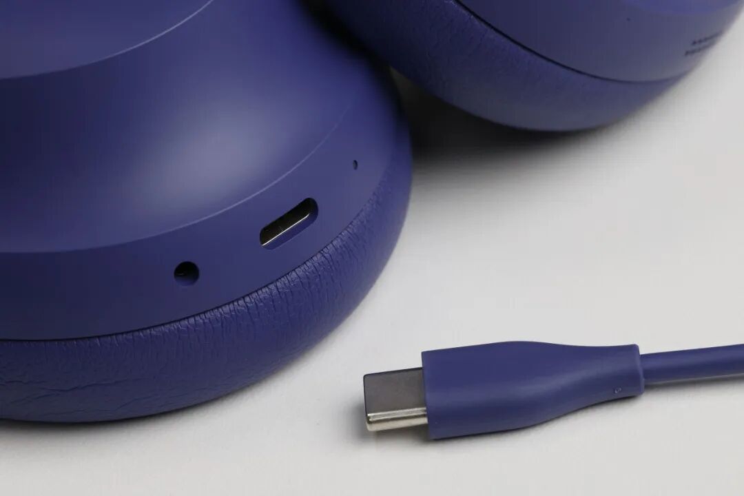 在左耳外壳一侧,各一个USB-C接口和2.5mm插孔也与前代Bose QC消噪耳机Ultra一致,不过在功能上却有变化。2.5mm插孔还是用来连接音频线,通过附件中的3.5mm至2.5mm音频连接线,可以连接音频设备的3.5mm音频接口,有线使用。