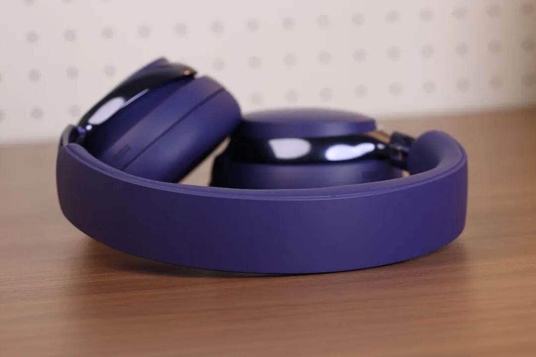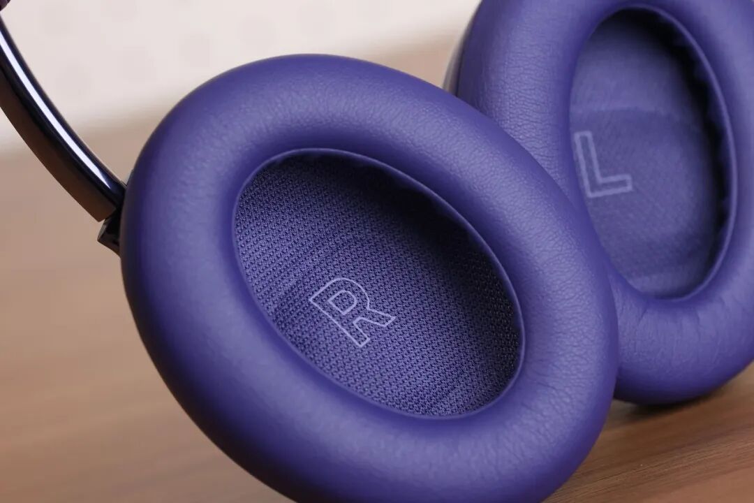 前面提到耳罩依旧支持多角度调节,还能折叠收纳,日常携带很省空间。实际佩戴时不用反复琢磨角度,很快就能找到服帖的位置。机身重量控制得不错,长时间戴下来不会觉得压头,椭圆形全包耳罩能稳稳裹住耳朵,柔软的耳垫分摊了对耳朵周围脸部的压力,戴久了也不会觉得闷或勒。扎实的包裹性还顺带提升了被动降噪效果,周围的环境杂音能被隔绝不少。如果感觉头梁对头顶的压力稍大,只需将头梁整体向后微调,即可获得更为松弛的佩戴感受。
