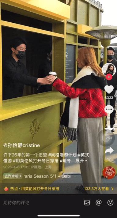 在这一背景下,「英式慢游」作为Burberry长期深耕的品牌IP,与抖音合作并非获取简单的流量加持,而是在于借助抖音的生态动能,助推品牌获得更确定性的心智渗透,扩大用户资产积累。基于抖音的内容生态和创作者生态优势,通过品牌与平台、用户共创风格趋势,一方面夯实Burberry在英伦风格领域的引领地位,强化品牌风格叙事,另一方面通过场景化的传播方式,让经典英伦美学自然融入中国消费者的日常生活中,拉近品牌与用户的距离。