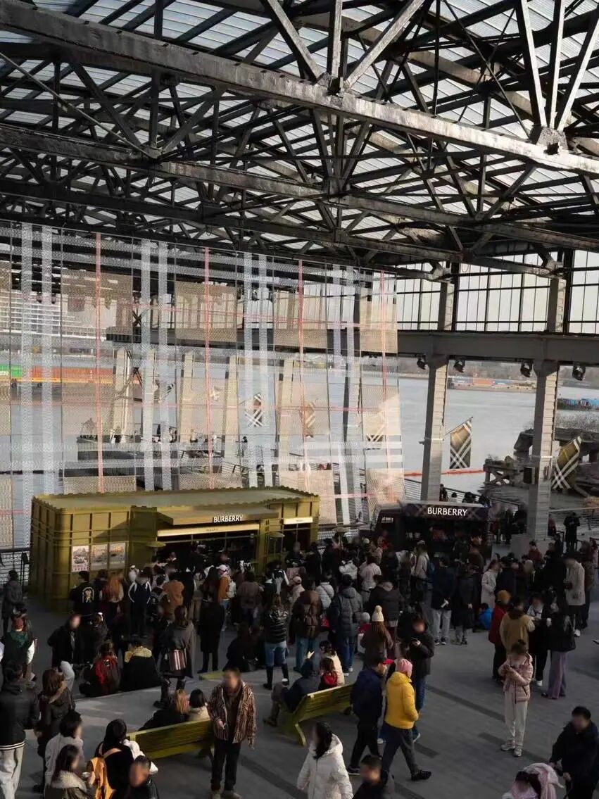 此外,现场设置了丰富的互动体验场景。除了有票务亭、咖啡亭、大型格纹灯饰、休闲长椅、品牌街旗等充满英伦氛围感的装置,完成指定任务还有机会获取限定饮品与明信片,还可以在快闪围巾车试戴各式各样的Burberry经典围巾。活动期间,众多用户到场参与互动,并在抖音上传内容分享活动体验,让这场英式慢游一时间成为沪上热点事件。