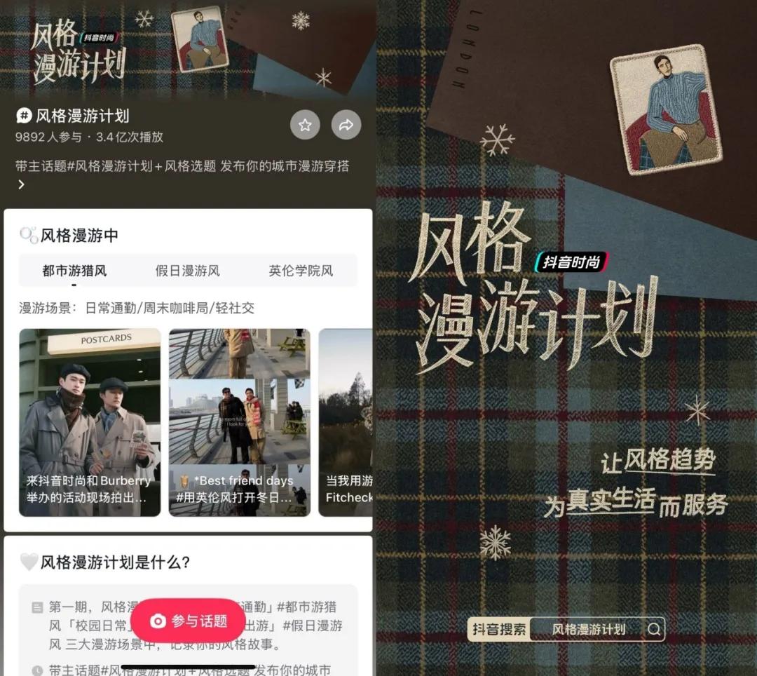 不难看出,抖音时尚「风格漫游计划」“让风格趋势为真实生活服务”的理念,与Burberry「英式慢游」让英伦风格融入生活的坚持,在某种程度上不谋而合。不仅如此,「风格漫游计划」的三大场景风格也与Burberry秋冬系列的穿着场景以及品牌风格高度相符。