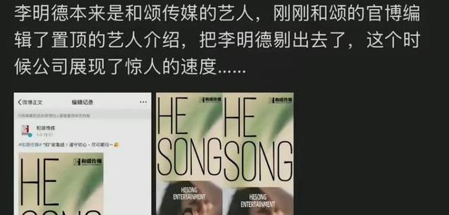 与此同时,李明德所属的经纪公司“和颂”也宣布解除与他的合作关系。