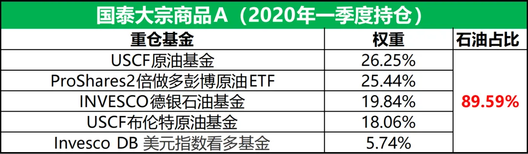 首先看国泰大宗商品,在2020年原油占比可是曾高达100%以上(有大量2倍做多原油ETF)。