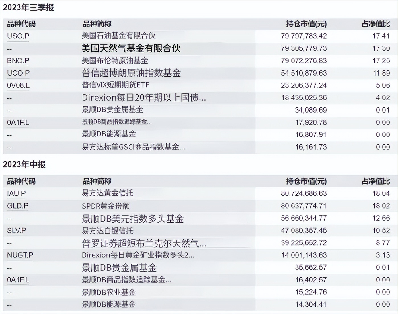 国泰大宗商品23年3、4季报持仓变化