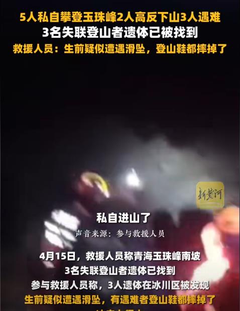 信息来源:极目新闻 2025-04-15 青海玉珠峰3名登山者遇难,青海省登山协会:正参与救援,近期未收到相关登山报备申请