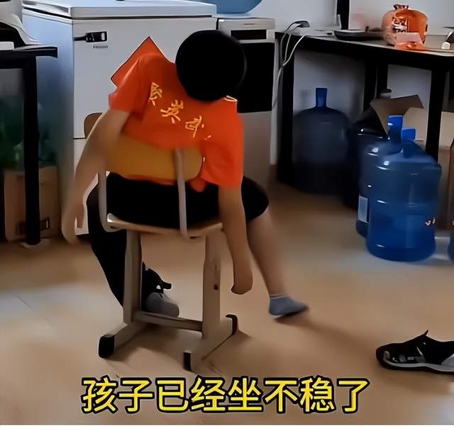 除此之外,还有一段孩子在椅子上坐着的视频,是一位教练扶孩子过来,扔在椅子上让他休息。