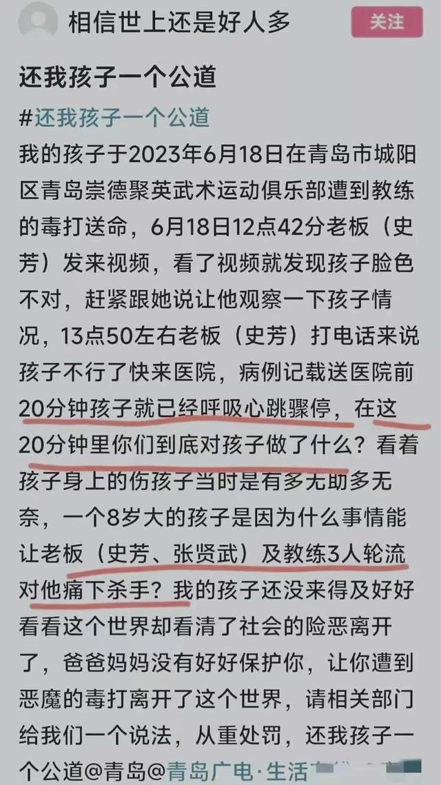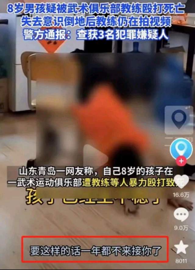 就在上周,山东青岛的8岁孩童在一家武术俱乐部接受训练时,意外身亡,家长得知情况后,只能将此事曝光。