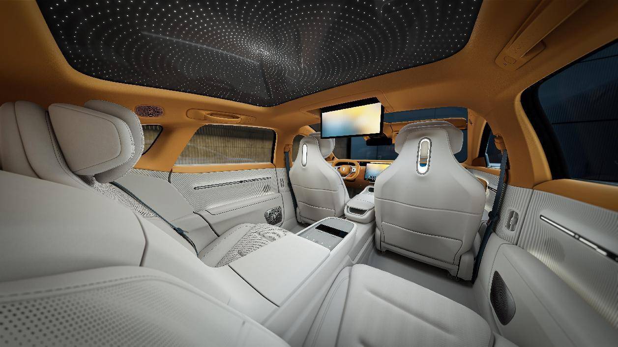 内饰方面,阿维塔012的座舱展现出简洁而豪华的风格。座舱配色选择了温暖的色调,并搭配星辉天幕,营造出一种温馨而舒适的氛围。车内几乎取消了大部分实体按键,仅保留了少数常用的按钮,这种设计不仅增强了车辆的科技感,同时也让内饰显得更加简约和雅致。