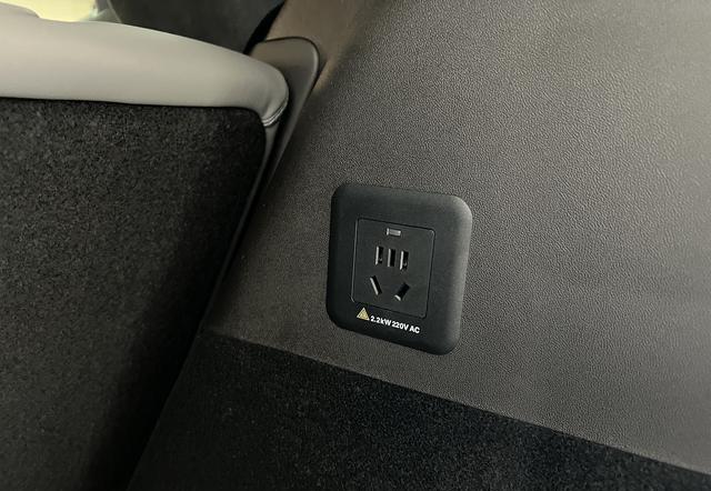 全新腾势N7后备厢规整,容量480升,电动拓展至1200升,右侧配220V三孔插座,功率2.2千瓦,便于充电。另设73升前备厢,适合存放需隔味物品。