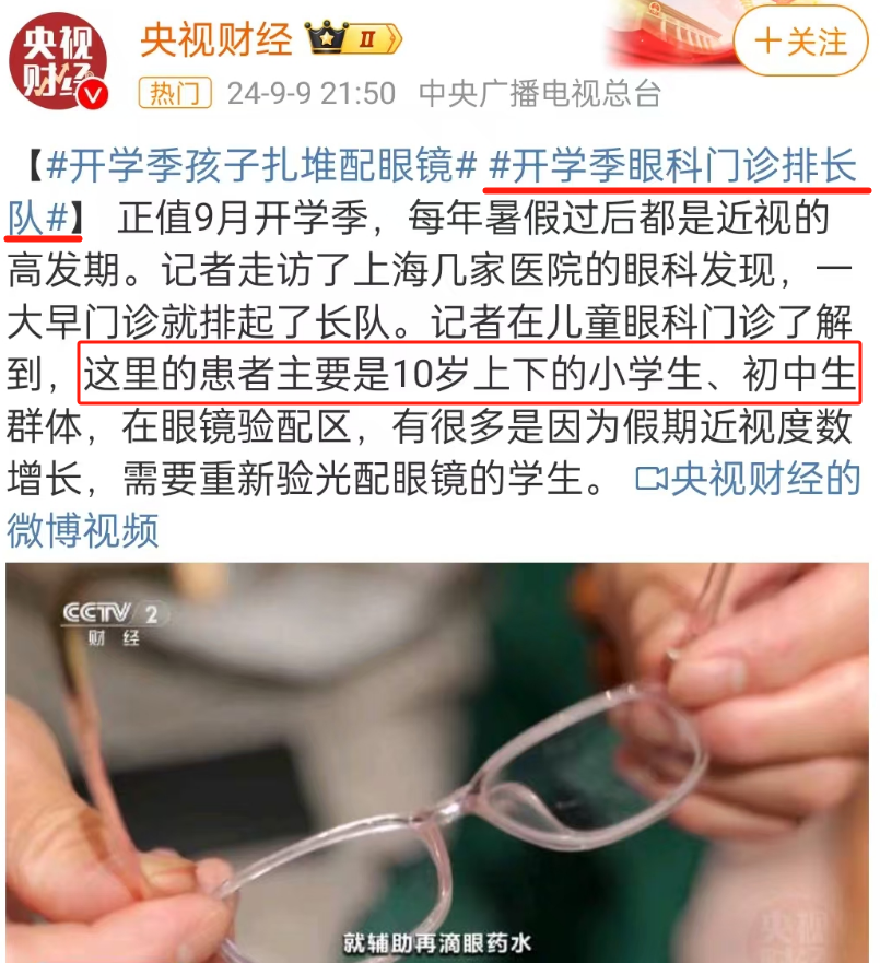 我国目前的近视患者达6亿,青少年近视率居世界第一。高中生和大学生的近视率均已超过七成并逐年上升,小学生的近视率也接近40%。