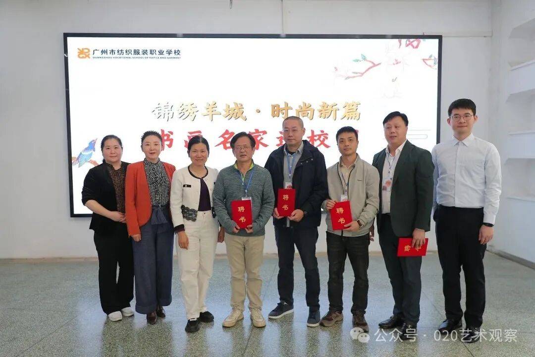活动现场,聘请张铁威、卜绍基、陈天硕、卓願为学校美育导师,广州市纺织服装职业学校党委副书记、校长黄素欢颁发聘书并合影