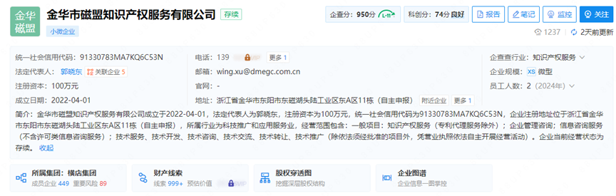 横店东磁有31件专利出现过权利转移(转让),出现转移的原因包括横店东磁内部各个公司之间的转让,或是公司更名导致的著录项目变更,并没有外购过专利。同时,横店东磁旗下有一家知识产权运营公司(不涉及专利代理业务)-金华市磁盟知识产权服务有限公司,该公司的法人是横店东磁的副总经理郭晓东,横店东磁将包括部分光伏相关的专利转让或许可给这个运营公司,可见横店东磁在知识产权运营方面做得不错。