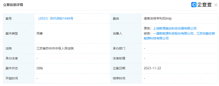 还有一家企业就是一道新能。根据赶碳号调查,一道新能曾经在2023年被晶科能源的子公司上饶新源越动科技发展有限公司起诉侵犯其两件发明专利的权利。