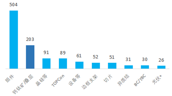 通过对协鑫集成的专利进行大致的技术划分,可以看出,协鑫集成的专利中涉及组件的专利最多,超过500件。