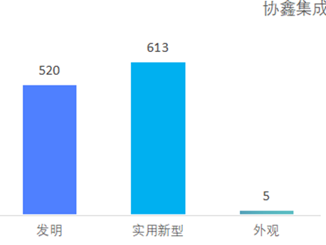 协鑫集成的专利中,发明专利有520件,实用新型数量较多,达到613件,另外协鑫集成还申请了5件外观设计专利。