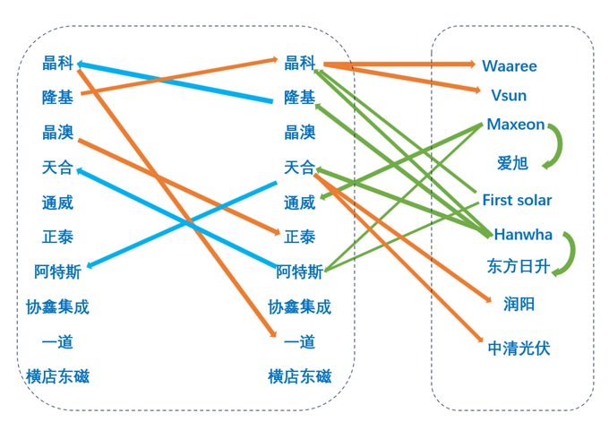 通威股份作为组件TOP10中跃升最快的企业,除了在叠瓦技术上与Maxeon有过纠纷以外,其实也不算真正卷入专利诉讼。不过,由于其是硅料+电池的双龙头,其在 产业链上的影响力决定了专利风险非常有限,所以并不是我们今天分析的重点。