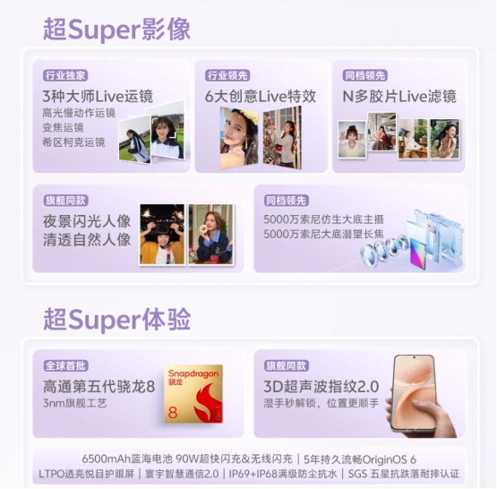 不仅如此,这款vivo S50 Pro mini还搭载了高通骁龙8Gen5、3D超声波指纹2.0、旗舰级影像系统等旗舰配置。在安兔兔跑分测试中,它直接拿下超300万的跑分成绩轻轻松松;而且它的指纹解锁体验也非常好,解锁位置偏靠上,解锁更方便,还支持湿手和油手解锁,暗光下解锁不刺眼。这款手机还全面提升了Live拍摄实力,新增了高光慢动作运镜、氛围胶片Live全家桶等功能玩法,还有Live路人消除功能支持,在进行Live拍摄的时候更容易出大片。