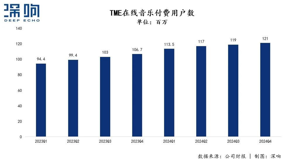 业务层面,用户数据也沿着过去几个季度的上升曲线平稳发展。其中,四季度在线音乐付费用户数同比上涨13.4%达1.21亿,单个付费用户月均收入则进一步增长至11.1元。