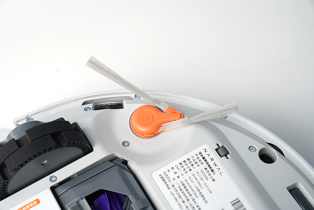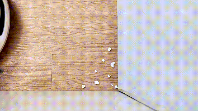 主动解缠绕外扩边刷2.0,采用“一长一短”、“可活动式”的V字型边刷结构,从下面实测中可以看到,在清洁边角时,利用边刷反转延长有效清洁半径至80mm,快速收拢边角脏污,在保障整机毛发零缠绕体验的同时,提升了边角清扫能力。