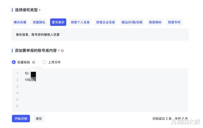 1、在上传链接时,我在添加举报账号或内容时,可以选择“批量黏贴”或“上传文件”。
