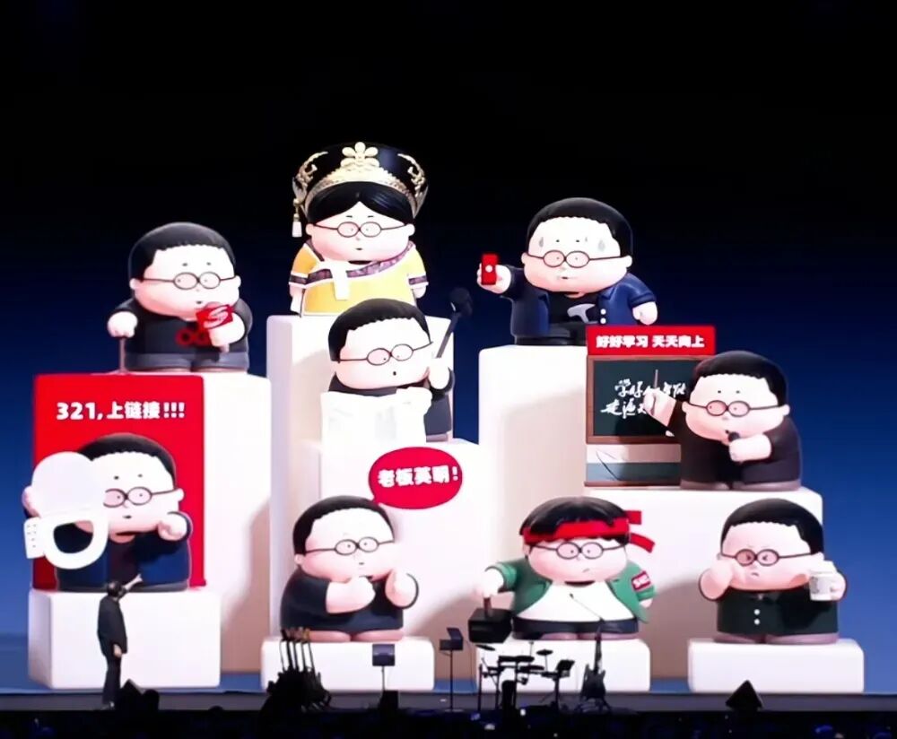 另外,罗永浩还展示了系列公仔,包含"砸冰箱""卖手机""脱口秀"等标志性形象的盲盒,定价单个79元、整套632元,5000套全部用于公益。