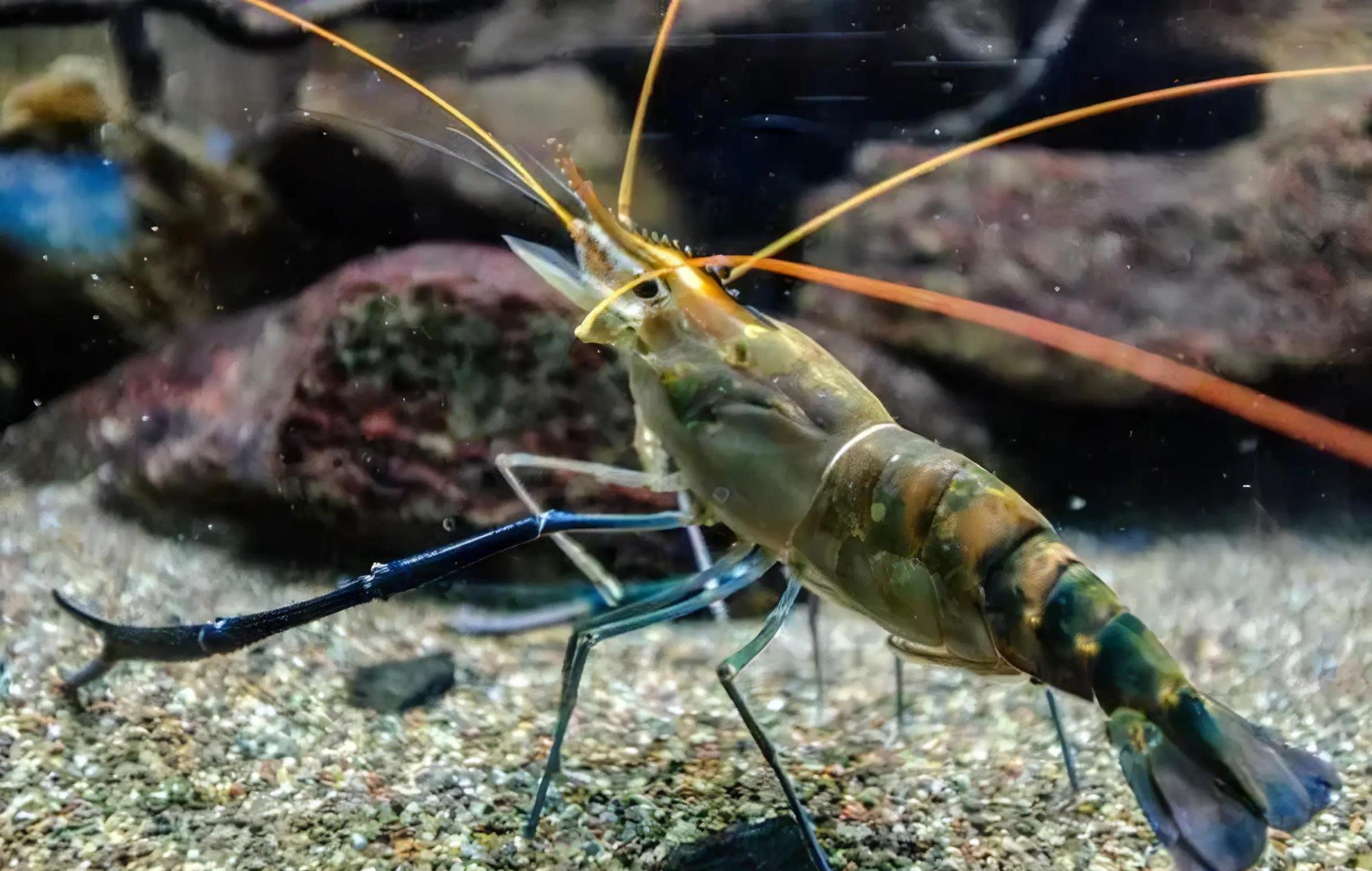珠江里的蓝色虾:印度河虾的奇特特征第一次看到这种虾,许多人都会惊讶于它们硕大的体型和深蓝色的身体。