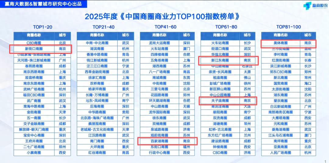 近日,2025年度《中国商圈商业力TOP100指数榜单》正式揭晓,南京新街口商圈排名第二,仅次于北京CBD。
