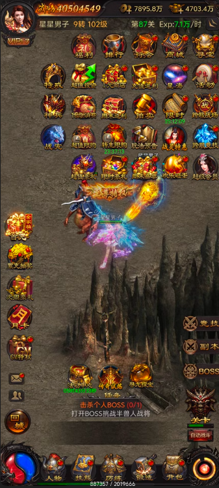 1. 核心玩法:刷怪爆装+激情PK挂机刷怪:自动战斗,击杀小怪/BOSS爆装备(光柱特效,爆率高)。