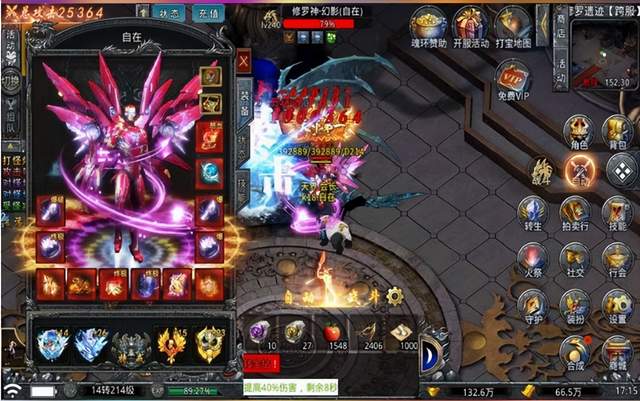 4. 长期养成(神魔/转生/坐骑)神魔系统:提升暴击、吸血等属性,满级后战力质变。