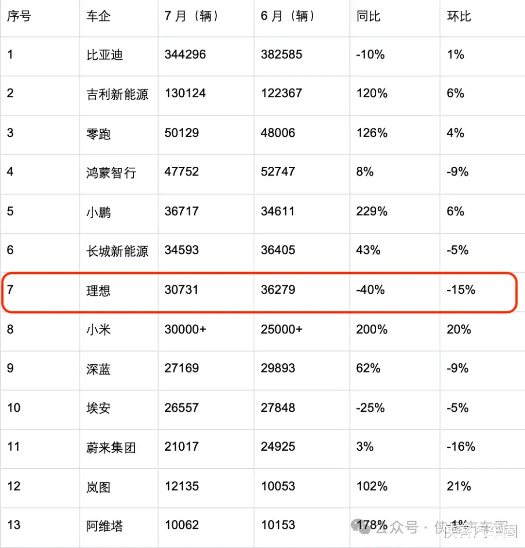 前有劲敌,后有追兵,开始卖车才一年多的小米汽车,7月份的销量已经追上来了,以30000+的销量仅仅咬住理想,这不到1000辆的销量,理想怕也是很快就会被小米超越吧。