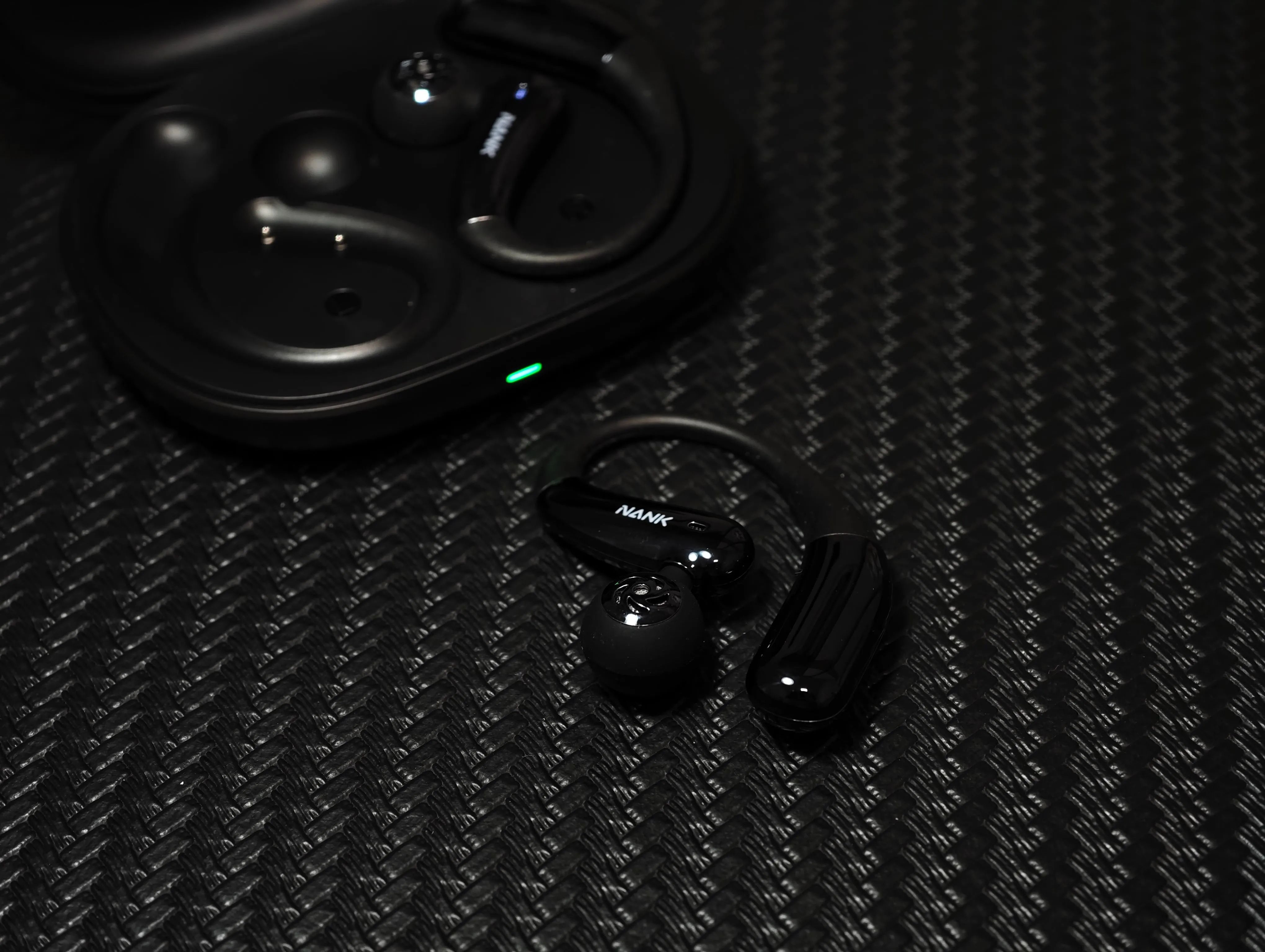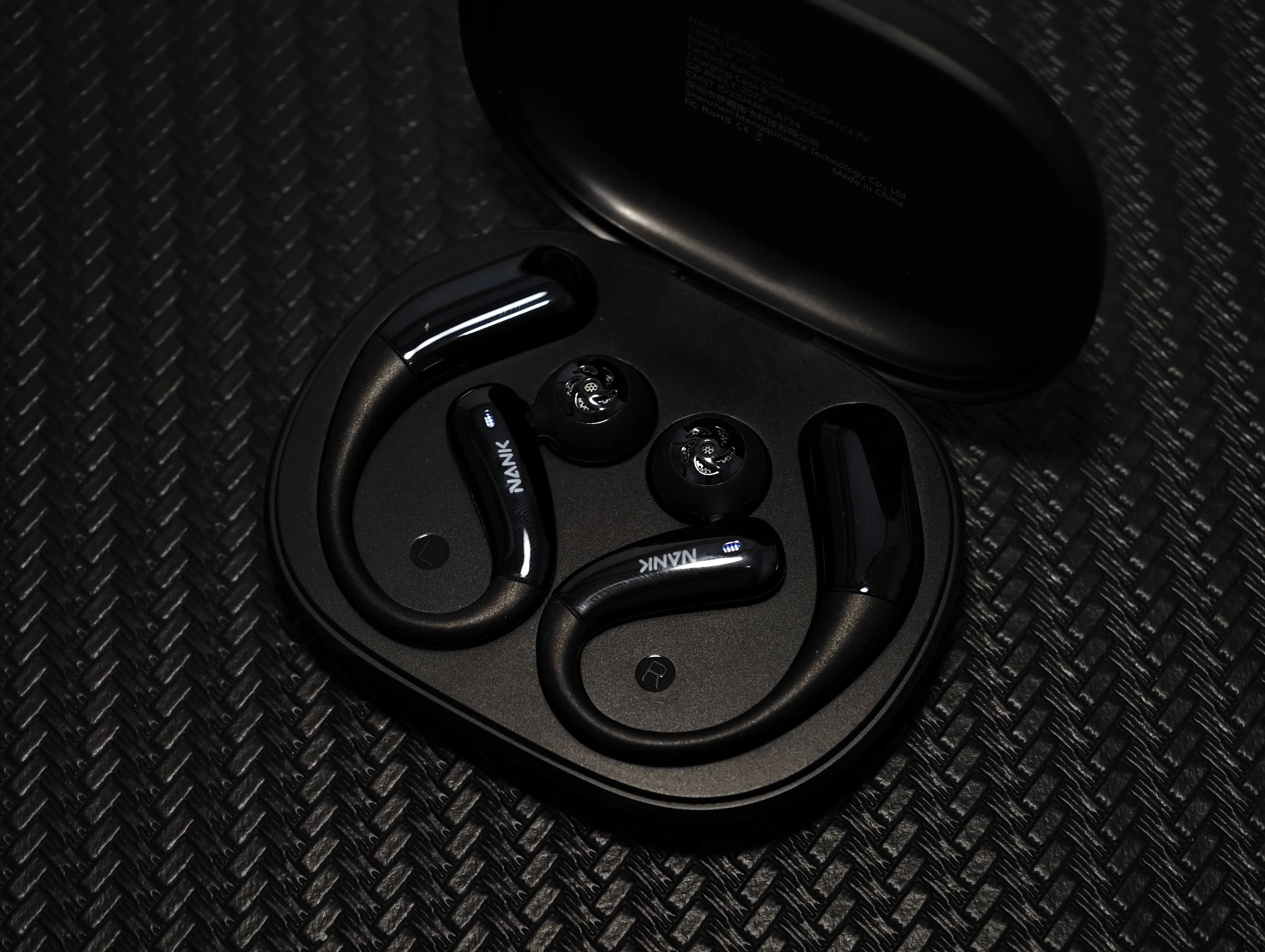 南卡OE Nova的设计颇具巧思,挂耳式结构搭配仿生流线型圆润造型,扬声器悬挂于耳柄端,未来感十足,磨砂黑与亮面银的撞色更添时尚。