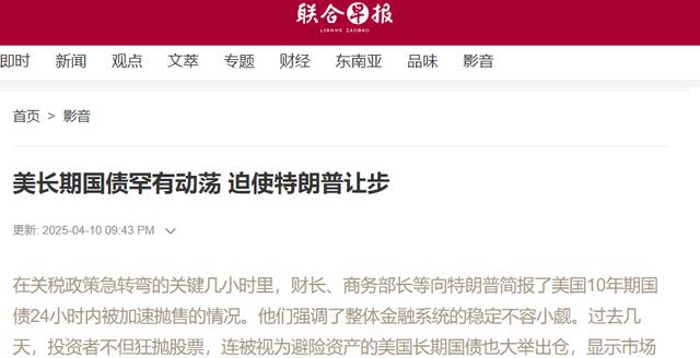 参考来源:联合早报2025.04.10《美长期国债罕有动荡 迫使特朗普让步》