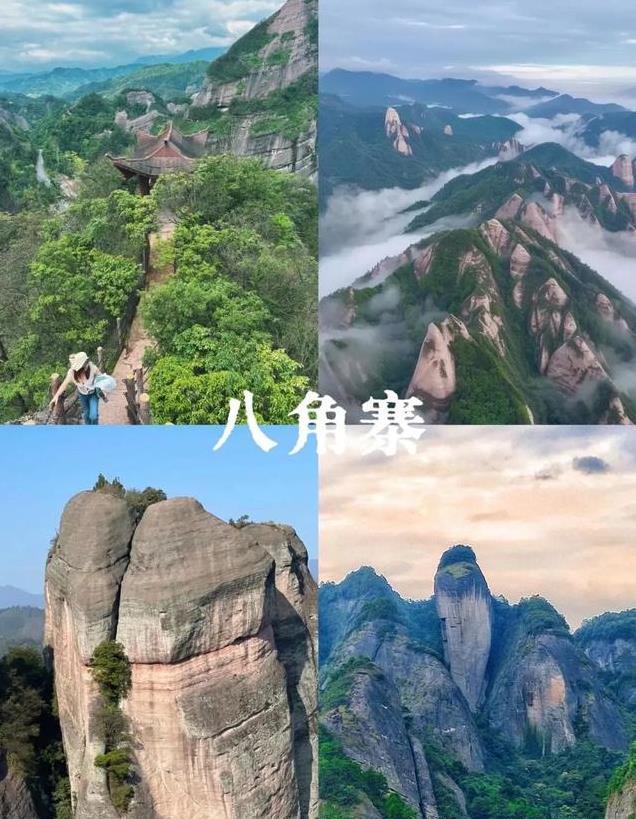 八角寨位于广西壮族自治区桂林市资源县梅溪乡大坨村,是国家4A级景区,同时也是世界自然遗产、国家森林公园和国家地质公园。形成于距今2亿年的前侏罗纪,被誉为丹霞瑰宝,群山逶迤,壮观又险峻