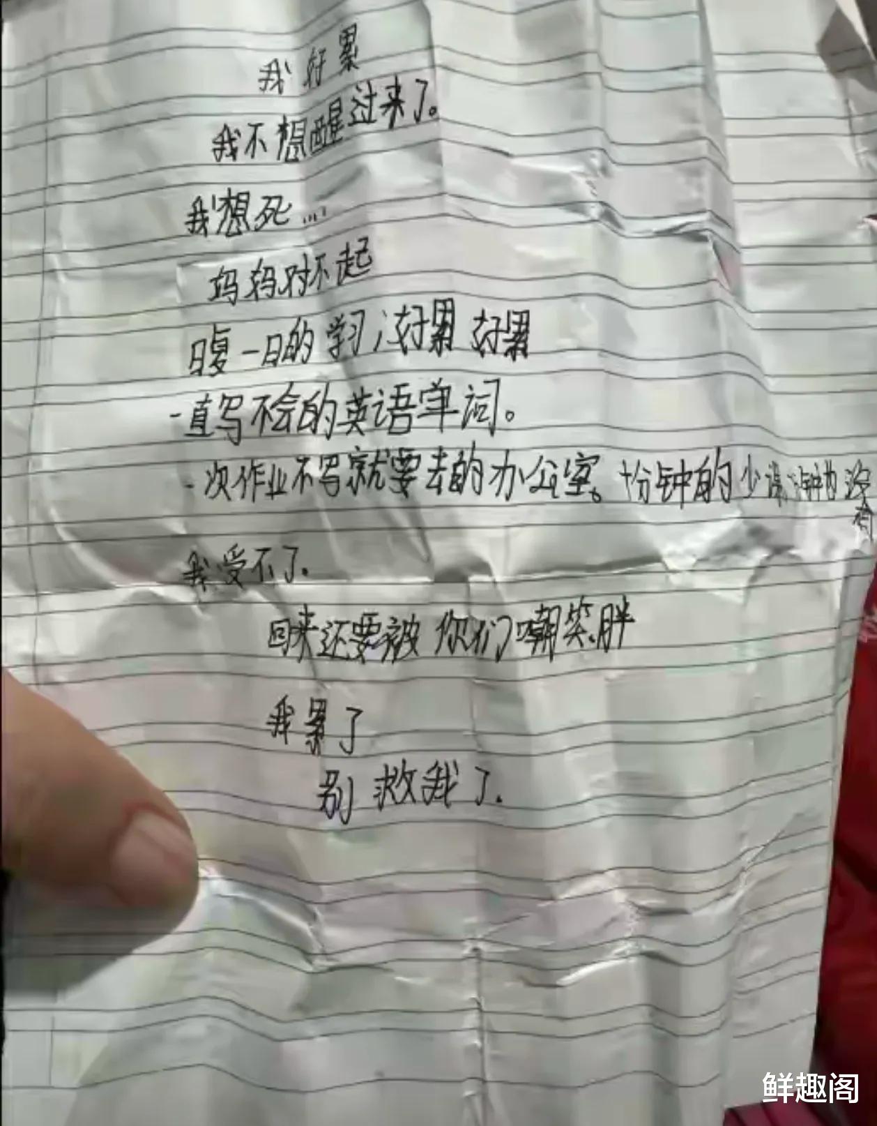 江苏12岁女孩服药自杀的事情,牵动着每个人的心。尤其是她短短几行字的遗书,或许可以窥探出她自杀的原因。毫无疑问,遗书中明显提出英语老师和学习累,也让她所在的学校和医院老师遭到了质疑。