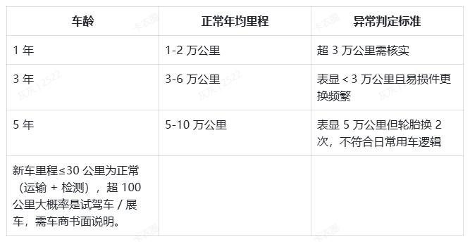 二、调表识别 + 避坑科普(数据 + 逻辑双保险)1. 里程逻辑判断表(快速排查不合理里程)