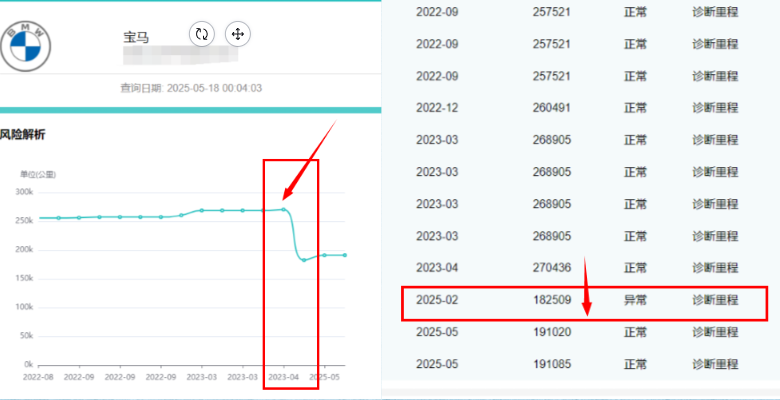 ③判断标准:里程应持续递增,若出现 “断崖式下降”(如上次记录 8 万公里,本次表显 5 万公里),直接判定调表。