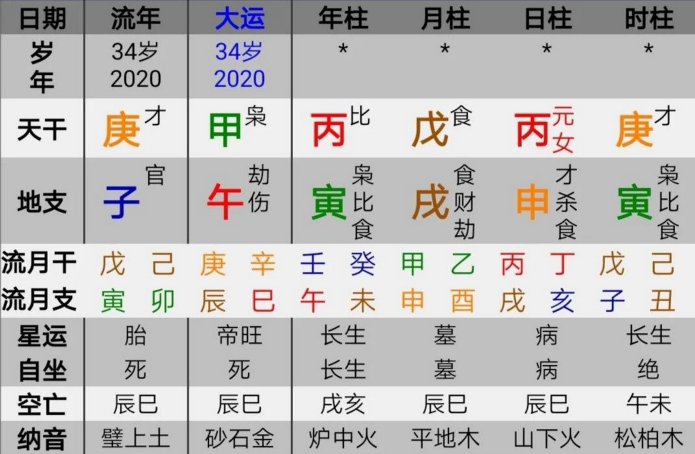 大运:丁酉 丙申 乙未 甲午 癸巳 壬辰 辛卯 庚寅