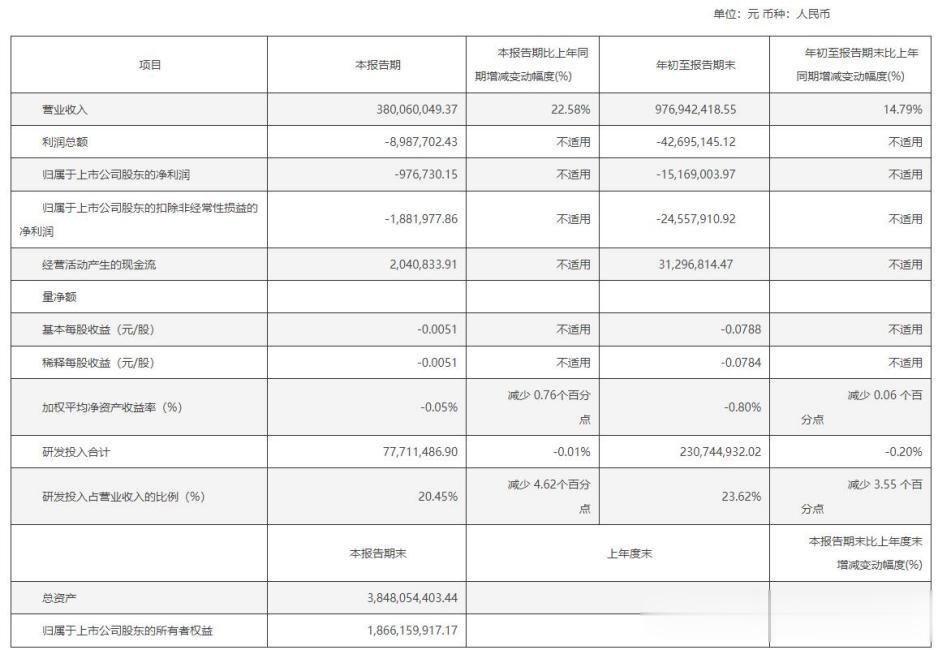 2025年前三季度公司实现营业收入976942418.55元,同比增加14.79%;实现归属于母公司所有者的净利润为亏损15169003.97元;实现归属于母公司所有者的扣除非经常性损益的净利润为亏损24557910.92元。