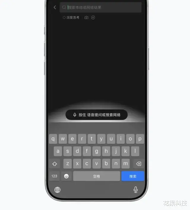 另外,在微信消息列表或者通讯录顶部点击搜索,在搜索页面底部新增了一个「按住语音提问或搜索网络」按钮。